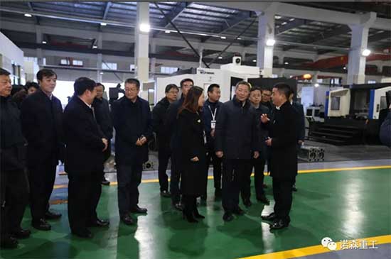 2019年12月18日,鹽城市委書(shū)記戴源、市長(zhǎng)曹路寶及副市長(zhǎng)、濱??h委書(shū)記孫軼、縣長(zhǎng)劉永軒等領(lǐng)導(dǎo)一行蒞臨江蘇諾森重工有限公司參觀考察企業(yè)發(fā)展情況。諾森重工董事長(zhǎng)劉春梅,總經(jīng)理王海濤全程陪同視察。